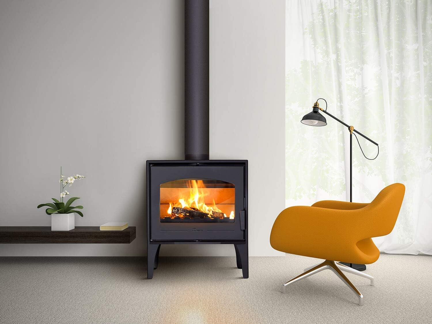 La estufa CALPE une respeto al medio ambiente y diseño. Su gran cristal atrapará la atención de tu salón. No podrás dejar de mirarla